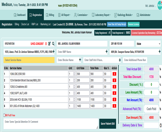 Coder life IT এর DMS Pro সফ্টওয়্যার দিয়ে খুব সহজে রোগীর বিল করতে পারতেছি। বিল ভুল হইলে তা ঠিক করতে কোন ঝামেলা হয়না। বিলে নতুন টেস্ট সহজেই যুক্ত করতে পারতেছি।